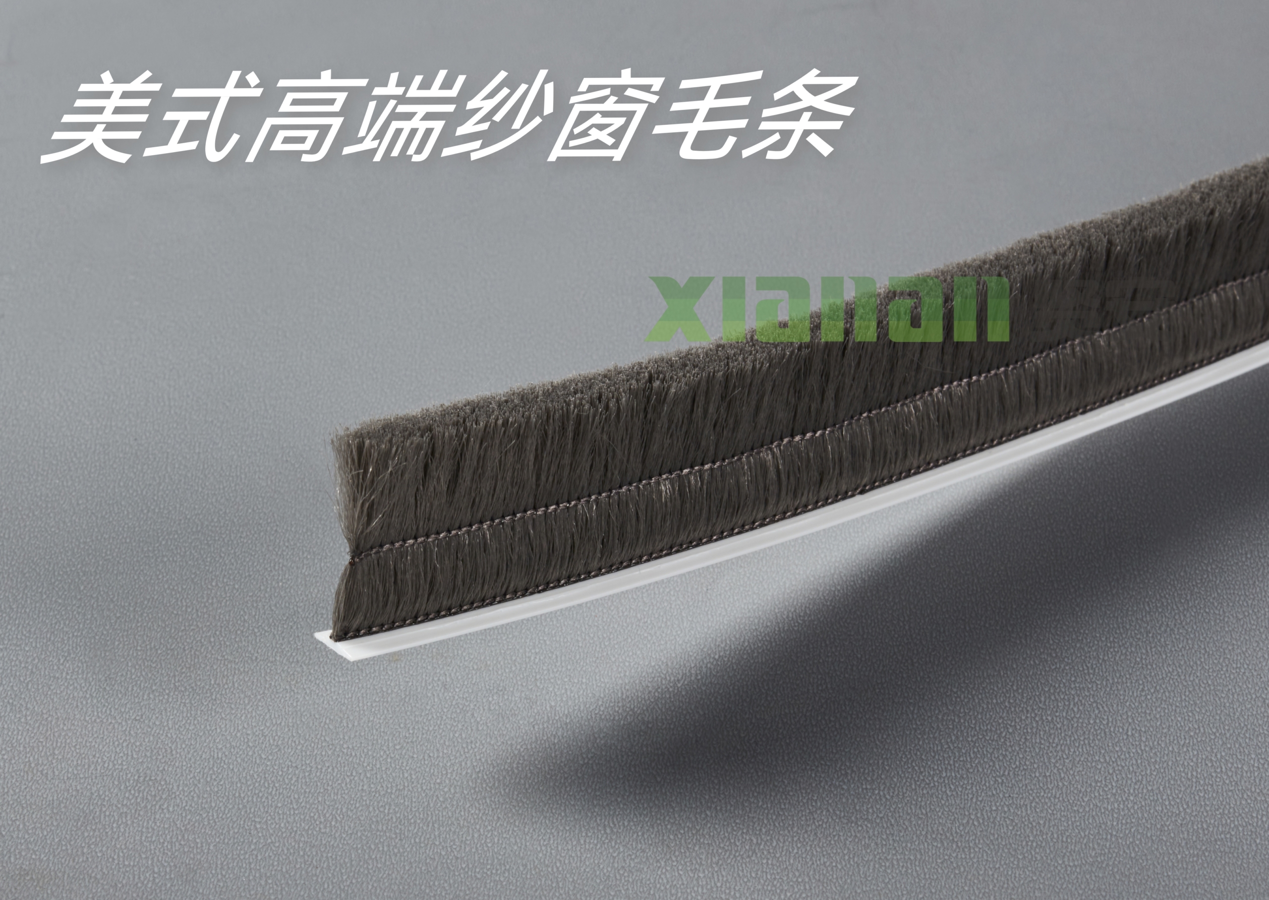 贤安新款美式密封毛条,植毛居中,底部两侧肩宽尺寸一致,硬度更容易穿槽、不掉毛,特别合适使用自动化设备穿槽。